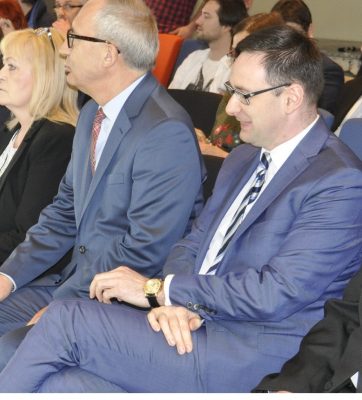 W pierwszym rzędzie od prawej: Tadeusz Wita-prezes Enspirion, Daniel Obajtek – prezes Energa SA, Kazimierz Smoliński – wiceminister Infrastruktury i Budownictwa, Alicja Klimiuk – wiceprezes Energa SA, Jacek Kościelniak – wiceprezes Energa SA, Tomasz Bogucki – ekspert ds. elektromobilności z Enspirion