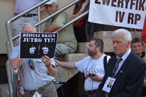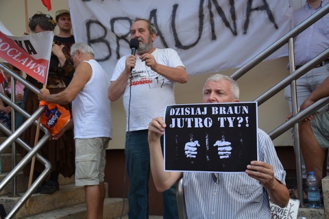 Przed wrocławskim aresztem śledczym przy ul. Świebodzkiej odbyła się demonstracja solidarności z represjonowanym Grzegorzem Braunem – reżyserem, scenarzystą, nauczycielem akademickim, publicystą, twórcą takich m.in. filmów jak: „Plusy dodatnie, plusy ujemne”, „Oskarżenie”, „TW Bolek”, „Towarzysz generał”, „Poeta pozwany”.