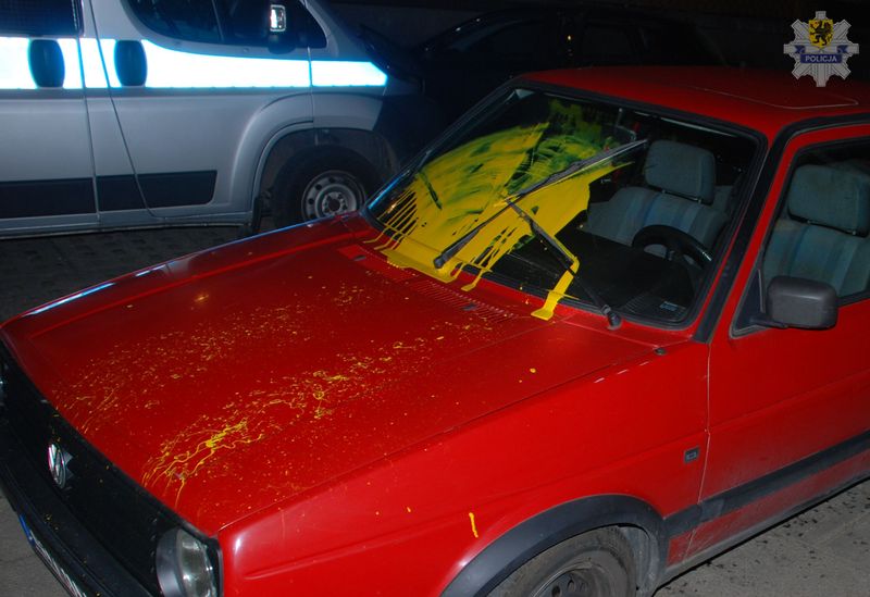 We wtorek wieczorem dyżurny bytowskiej komendy odebrał zgłoszenie o uszkodzeniu mienia. Pokrzywdzony poinformował, że jego samochód został oblany farbą. Na miejsce natychmiast skierowany został patrol interwencyjny.