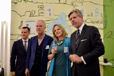 Na zdjęciu znajdują się (od lewej): Ambasador Rzeczypospolitej Polskiej w Brukseli Artur Orzechowski, Dyrektor Gdańskiego Teatru Szekspirowskiego i Dyrektor Artystyczny Festiwalu Szekspirowskiego w Gdańsku Prof. Jerzy Limon, Koordynatorka Festiwalu Szekspirowskiego w Gdańsku Joanna Śnieżko-Misterek oraz przewodniczący posiedzenia Międzynarodowego Jury EFFE Award, Prezes Uniwersytetu SWPS w Warszawie Paweł Potoroczyn.