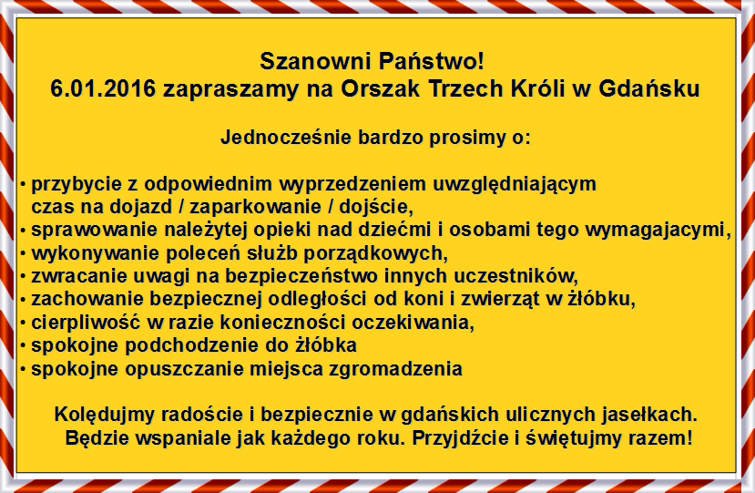 - Godz. 11:30 rozpoczęcie Orszaku przy wejściu głównym do Bazyliki Mariackiej (zbieramy się kilka minut wcześniej)