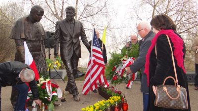 Członkowie i sympatycy Stowarzyszenia „Godność” skupiającego działaczy opozycji antykomunistycznej, więzionych i represjonowanych w czasach PRL pamiętają o papieżu Polaku, św. Janie Pawle II. Spotkali się przy pomniku Jana Pawła II i prezydenta Ronalda Reagana w Gdańsku, 2 kwietnia, w 12. rocznicę śmierci papieża. Mija także 30.rocznica wizyty Jana Pawła II na Wybrzeżu. U stóp pomnika złożono wiązanki kwiatów, odmówiono modlitwę dziękczynną i odśpiewano rotę. W spotkaniu udział wzięła eurodeputowana z Pomorza Anna Fotyga oraz działacze PiS, na czele z liderem samorządowców gdańskich Kazimierzem Koralewskim.
