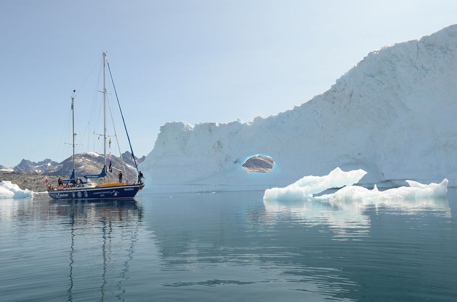 Z tym upałem jest o tyle śmiesznie, że płynęliśmy przez Sermilik fiord – największy fiord w okolicy, do którego schodzą trzy gigantyczne lodowce. Już od dwóch dni słyszeliśmy co jakiś czas jak z hukiem wielkiej detonacji cieli się któryś z nich. Teraz chcielibyśmy to zobaczyć – no dobrze, może nie ze zbyt bliska…