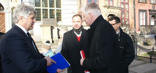 Sławomir Nowak (w środku) rozmawia ze swoimi partyjnymi kolegami – marszałkiem pomorskim i wicewojewodą pomorskim