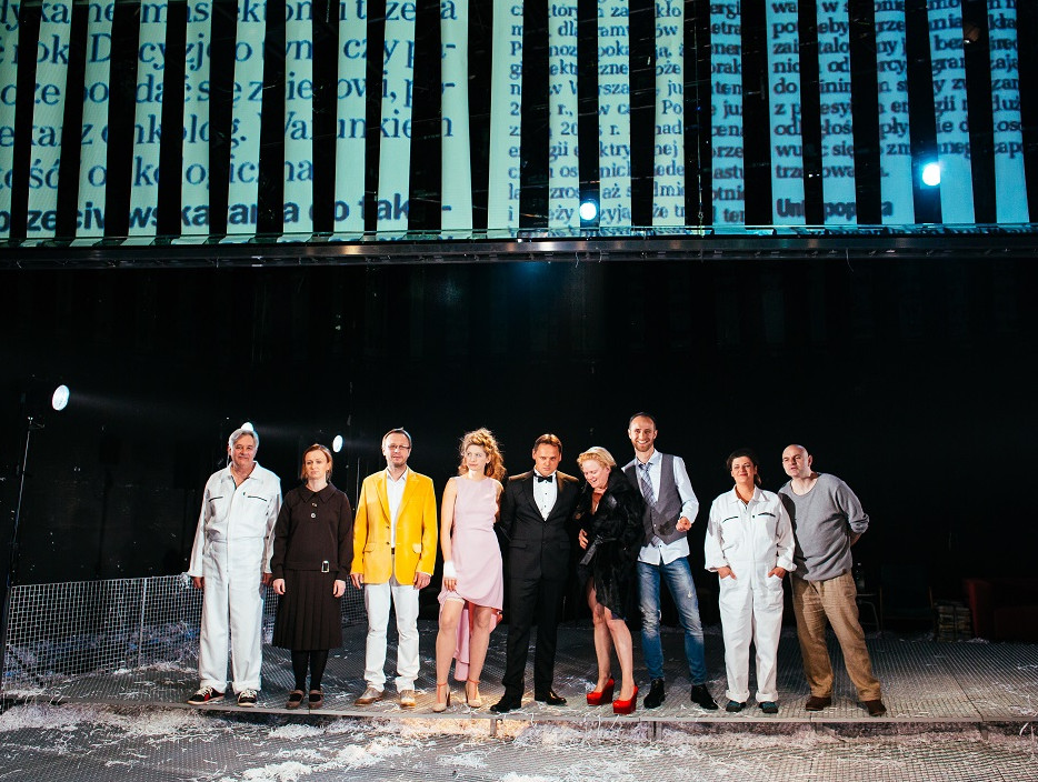 – Chyba wszyscy zdajemy sobie sprawę z zakłamywania rzeczywistości, z manipulacji, w której uczestniczymy – powiedziała Katarzyna Figura, odtwórczyni roli Rastawieckiej, właścicielki dziennika. – Oczywiście przewodzą temu media, nie tylko gazety i telewizja, uważam, że dziś najbardziej diabelskim narzędziem jest Internet . To, co można z życiem człowieka, całego narodu, zrobić z dnia na dzień, jest straszne. Reżyser, Adam Orzechowski, wrzucił nas w pracę na scenie, pozbawiając wszelkiej historii. Rekwizyty, scenografia, wyciągają to zjawisko okrutne. Mam wrażenie, że jesteśmy w rodzaju jakiejś klatki. To może być lej po bombie, śmietnisko ludzkie. Redakcja, w której ludzie są wypaleni. Słowo dziś napisane za chwilę się w ogóle nie liczy. To jest sieczka. Ludzie też są sieczką. Ja sobie początkowo nie wyobrażałam, że świat, w którym bohaterowie są, może wygenerować tego rodzaju potwora, którego gram. Wiedziałam, że Rastawiecka jest silną osobą. Reżyser sprowokował nas, aktorów, do poszukania znacznie głębiej i wynalezienia, zastosowania, kompletnie innych narzędzi, które sprawią, że odbiorca będzie zbulwersowany, uderzony prawdą o nas samych. Ta prawda czasami bywa groteskowo śmieszna, wulgarna, bezwstydna, bezwzględna, krwawa i bez skrupułów. Ale – niestety – jest prawdą. W sztuce mowa jest o tęsknocie człowieka za czystością, o szarganiu ideałów, które giną w śmieciach, że za wszystkim stoi pieniądz, który rządzi, jest bogiem, stanowi o władzy i z ludzi wyciąga najgorsze instynkty.