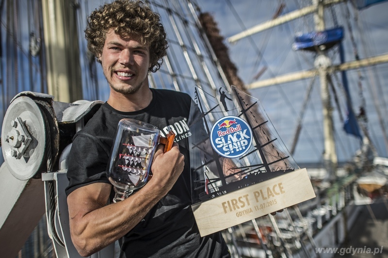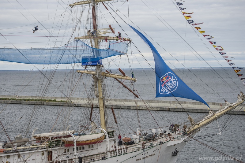 Slackline to fascynująca dyscyplina sportowa, w której zawodnicy wykonują skomplikowane triki, balansując na wąskich taśmach rozpiętych na wysokości. Międzynarodowa elita tego sportu 11 lipca 2015 r. zawitała do Gdyni, by zmierzyć się w pierwszej edycji Red Bull Slackship. Podobne wydarzenia rozegrały się wcześniej tylko trzy razy na świecie – dwa razy we Włoszech i w USA. Polską imprezę wyróżniała jednak jej nietypowa sceneria – pomiędzy masztami żaglowca Dar Młodzieży, ale i poziom trudności zawodów. Slacklinowa rywalizacja jeszcze nigdy nie odbywała się na tak dużej wysokości, a jedynym zabezpieczeniem zawodników była zawieszona kilka metrów poniżej taśmy, siatka. Otwarta przestrzeń i brak punktu odniesienia, wymagały od uczestników dużej odwagi i koncentracji podczas wykonywanych ewolucji.