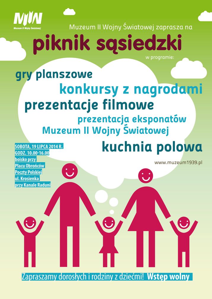 Piknik odbędzie się w sobotę, 19 lipca 2014 r. w godz. 10.00- 16.00 na terenie boiska przy ul. Krosienka, nieopodal Placu Obrońców Poczty Polskiej.