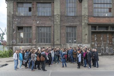 Zwiedzając tereny postoczniowe, przewodnicy i przewodniczki opowiadają o nieistniejących już budynkach: stołówce reprezentacyjnej, dawnej przychodni czy administracji stoczni. Można obejrzeć budynek dyrekcji, salę BHP, historyczną bramę nr 2, Halę 42 A i Wydział Rurarski czy pochylnie. Wędrówkę po terenach postoczniowych poszerzamy w tym roku o, od niedawna ogólnodostępny, teren Stoczni Cesarskiej. – Zobaczymy z bliska kompleks zachowanych budynków oraz Halę 42A, gdzie jako suwnicowa pracowała nasza bohaterka Anna Walentynowicz – mówi Anna Urbańczyk.