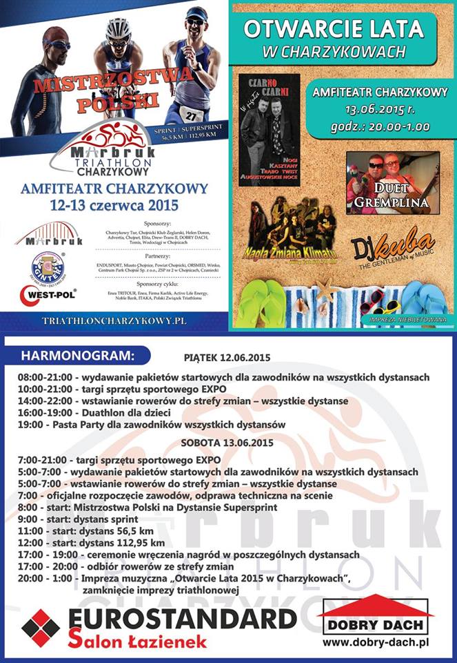 POMORZE. 13 czerwca odbędzie się Marbruk Triathlon Charzykowy 2015, podczas którego do rywalizacji stanie kilkuset zawodników startujących na czterech dystansach. Zawody, wchodzące w skład cyklu Enea Tri Tour, zostaną rozegrane w niewielkiej, malowniczej miejscowości. Najważniejszym elementem zbliżających się zawodów będzie rywalizacja na dystansie supersprintu, w ramach której rozegrane zostaną Mistrzostwa Polski.