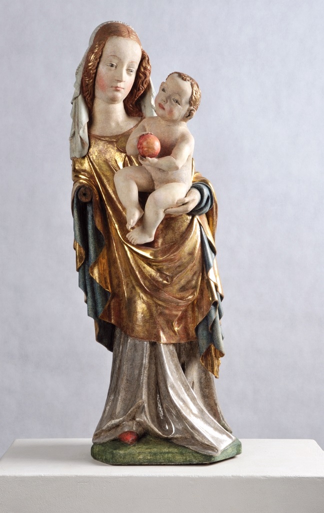 Madonna z Dzieciątkiem, Gdańsk, ok. 1400, drewno lipowe, polichromia i złocenie, rzeźba pełnoplastyczna