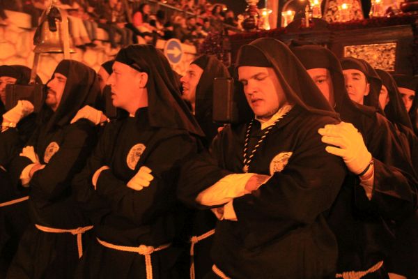 Zaczynamy od modlitwy, śpiewamy tradycyjne pieśni wielkopostne, prowadzenie śpiewu – Chór Mieszczan Gdańskich pod kier. Moniki Kaźmierczak i pod opieką artystyczną Czarka Paciorka; tego dnia umarł za nas nasz Bóg, stąd taki nastrój, przypominamy kanon pięknych, starych polskich pieśni związanych z cierpieniem, męką i śmiercią Jezusa Chrystusa. Nie ma świateł, towarzyszy nam tylko naturalne światło pochodni, świec, lampionów z ogniem, kandelabrów. Na czele idą ubrani w specjalne pokutne stroje, to inspiracja z Andaluzji, bębniarze z zespołu „Taraban”, nadając rytm marszowi.