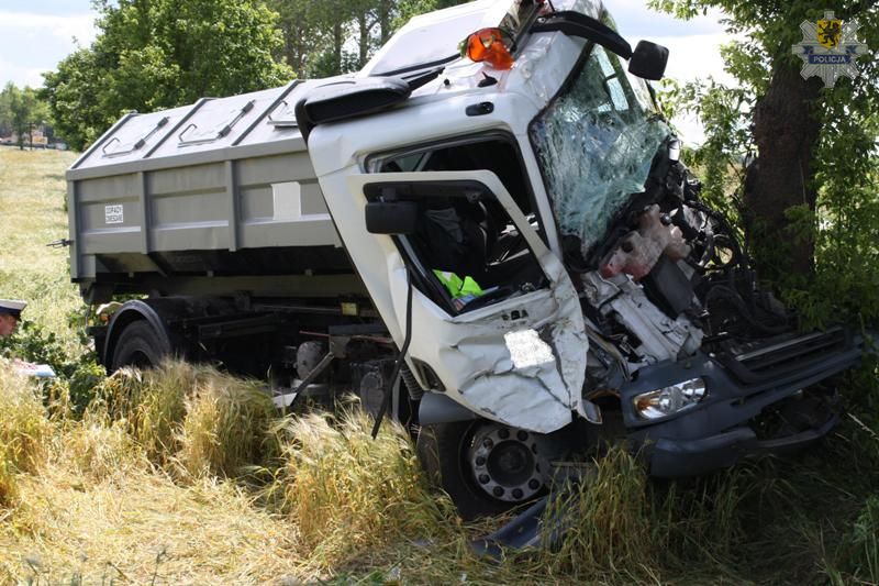 Do wypadku drogowego doszło w czwartek  w miejscowości Żabno w gminie Brusy. Kierujący samochodem ciężarowym na prostym odcinku drogi zjechał na pobocze i uderzył w drzewo.